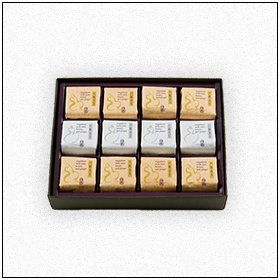 餅乾內餡是堅果和糖漬薑,切成3厘米見方的方塊,並獨立包裝。